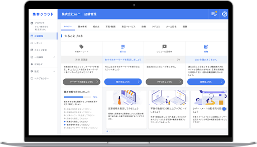 店舗の集客を得意とする「集客クラウド株式会社」で、1日500円~店舗集客を!店舗集客の内容としては、MEO対策からSEO対策、ホームページ制作など様々です。SEOに強いホームページはもちろん、AIとプロによるワンランク上のMEO対策も得意としています。MEO対策は、実店舗を持つ店舗様は必ず対策した方が良いとされており、実際にMEO対策した事によりWEBからのアクセス率は平均で200%増え、新規顧客の来店へ繋がっております。「Googleマップを通じて新規のお客様を増やしたい」「経営店舗数がありすぎて自社ではMEO対策まで手が回らない」「安く、確実に運用したい」など、お悩みの店舗様はぜひ一度ご相談下さい。弊社では、数十万店舗のGoogleビジネスプロフィールの情報から、最新の情報を得て分析しております。SEO対策として、店舗様ごとに上がりやすいキーワードを適切に選定し、店舗集客に繋がるライティングを行います。ライティングでは、店舗集客に繋がるような内容はもちろん検索上位に表示されるよう、日々分析を行っております。また、店舗集客に必ず必要となる「SEO対策のされたホームページ」も集客クラウドでは簡単に作成可能です。ホームページの作成が難しいという方でも、弊社集客コンシェルジュに作成を丸ごとお任せ頂くことも可能ですので、お気軽にお申し付けください。弊社が独自開発したMEO対策ツールでは、順位の推移やインサイトデータをグラフで確認する事が出来ます!過去のデータと現在のデータを比べる事が出来るので、どこを対策したいいのかが視覚的に分かりやすいです。弊社集客コンシェルジュが、日々店舗様のインサイトデータや順位測定をチェックしていますので、アドバイスもさせて頂いております。